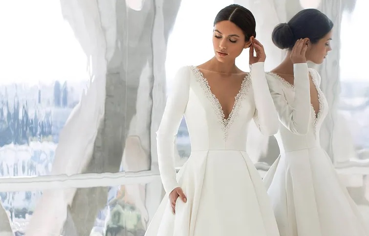 In 1922, Pronovias started as a family store in El Suizo, Barcelona; a sophisticated custom boutique that specialized in lace, embroidery, and high quality silks. High society local brides would come to have their dresses made here. It wasn’t until 1964 that the company launched its first collection of prêt-a-porter wedding gowns in Spain. The brand went global in 1980 with stores opening in France, Germany, the United Kingdom, and eventually making its way to the United States. Pronovias is now one of the most predominant bridal companies around the world.