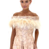 Off-Shoulder Feather Dress by Mira Couture